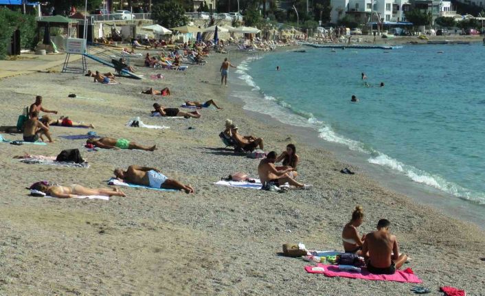Bodrum’da sonbahar mevsimine rağmen hava sıcaklığının 27 derecede seyretmesi plajları doldurdu. Güneşi gören yerli ve yabancı turistler denizin keyfini çıkardı.