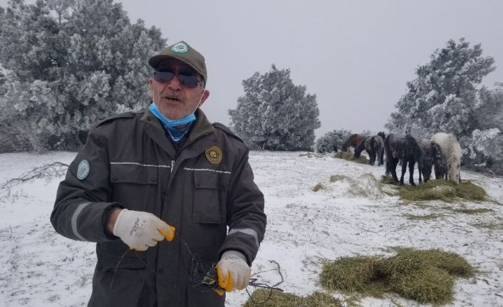 Spil Dağı Milli Park Müdürlüğünde görevli Turan Demirci, "Burada eksi 8 derece soğukta insanın dışarıda durması bile zor, ancak atları beslemek ve yem vermek zorundayız. Soğuk kış şartlarında atlarımızı yemsiz bırakmamaya özen gösteriyoruz" dedi.