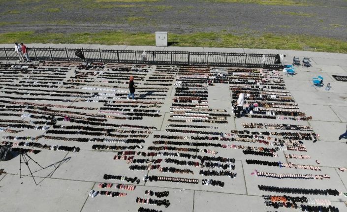 Eminönü Yeraltı Çarşısı’nda şiddetli yağışla sular altında kalan ayakkabılar Yenikapı miting alanına serilerek kurumaya bırakıldı. Kurmaya bırakılan ürünler drone ile havadan görüntülendi.