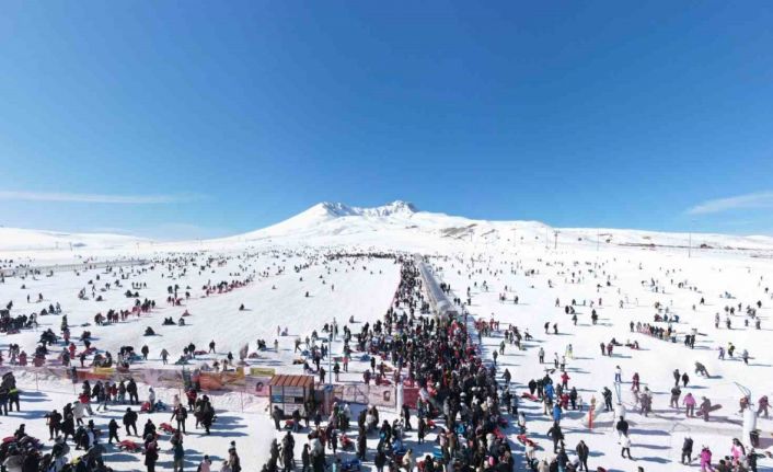 Türkiye’nin önemli kayak merkezlerinden olan Erciyes, hafta sonu binlerce turisti ağırlarken pistler turistlerle doldu taştı.