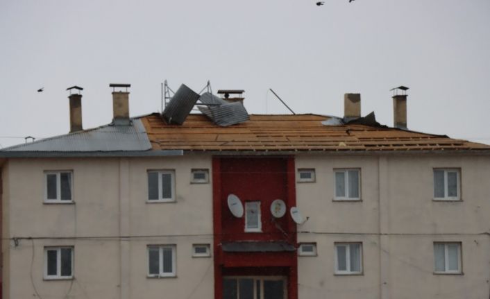 Erzurum’un Çat ilçesinde etkili olan şiddetli rüzgar ve fırtına çok sayıda binanın çatısının uçmasına neden oldu.