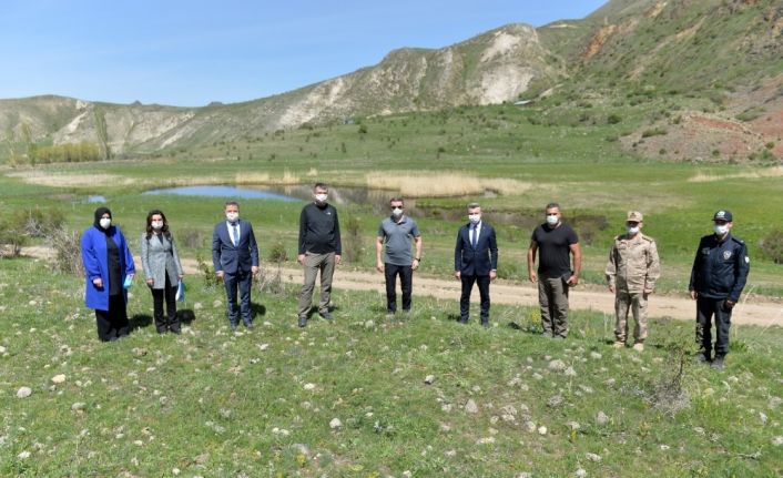 Erzurum Cumhuriyet Başsavcısı Burhan Bölükbaşı, Kaymakam Şaban Arda Yazıcı ve Belediye Başkanı Muammer Yiğider ile birlikte 6 yüzen adanın bulunduğu gölü gezen Vali Memiş, yetkililerden çalışmalarla ilgili bilgi aldı.