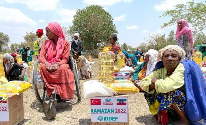 Yapılan açıklamada, “Tüm yıl boyunca olduğu gibi yardımlaşma ve dayanışma ayı olan Ramazan’da da hayırseverlerimizin emanetlerini gerçek ihtiyaç sahiplerine teslim etmeye devam ediyoruz. Bu kapsamda iç savaş, çatışma ve kuraklık gibi çeşitli nedenlerle acil kriz bölgeleri içinde yer alan ülkelerde ise çalışmalarımıza ağırlık veriyoruz. Doğu Afrika ülkesi Etiyopya’da etkili olan aşırı sıcakların yol açtığı kuraklık ve kıtlık ile birlikte, iç savaşın yerinden ettiği milyonlarca insan yaşam mücadelesi veriyor. Tüm sene sahada olan bölgedeki ekiplerimizle insani krizin yaşandığı Etiyopya’nın Sankora, Amhara, Oromia, Afar ve Tigray bölgelerinde kumanya dağıtımı yaptık. 5 milyondan fazla kişinin açlık, susuzluk ve kuraklıktan etkilendiği ülkede yaraları sarmaya devam ediyoruz. Aynı şekilde insani krizin derinleştiği diğer bir ülke olan Somali’de de şiddetli kuraklıkla mücadele eden kardeşlerimize hayırseverlerimizin kumanya emanetlerini ulaştırdık. Ülkede, temiz suya ulaşılamaması, tarımsal üretimin gerilemesi ve gıda krizinin büyümeye başlamasıyla yaklaşık 4,5 milyon insan açlığa mahkum hale geldi. Yardımlaşmanın arttığı mübarek ayda hayırseverlerimizin ikramlarını ulaştırarak Ramazan sevincini hüzün dolu topraklara taşımaya devam ediyoruz. Hayırseverler, bağış için ’iddef.org’ internet sitesi üzerinden ilgili hesap numaralarına ’EFT/havale’ yoluyla ya da ’0212 621 00 65’ numaralı telefondan detaylı bilgi alarak destekte bulunabiliyor" denildi.