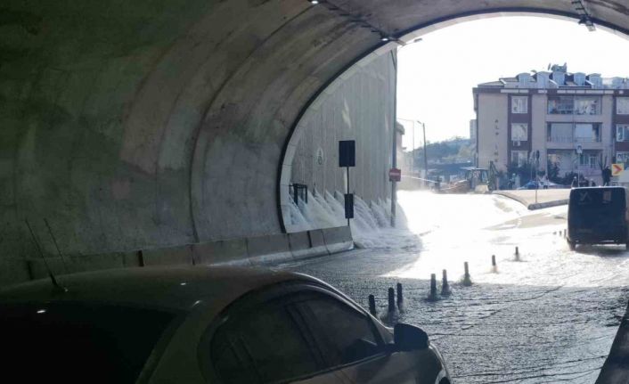 Eyüpsultan Silahtarağa’da İSKİ’nin çalışma yaptığı sırada içme suyu borusu patladı. Su metrelerce ilerleye fışkırırken, tramvay suya gömülünce seferlerde aksadı.