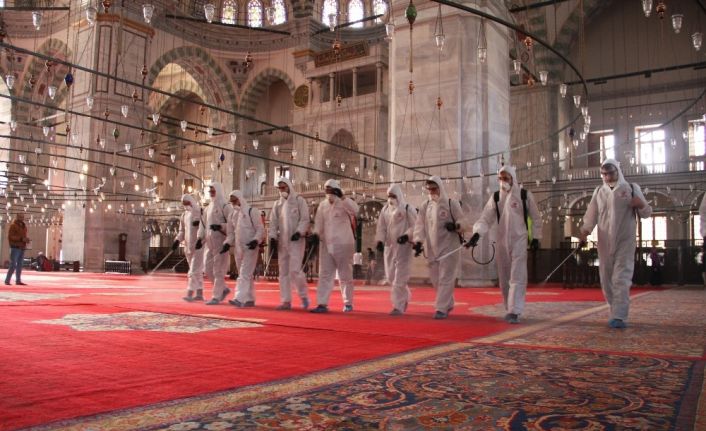 Virüs kaynaklı salgın hastalıkların yayılmasını önlemek amacıyla Fatih’te dezenfekte çalışmaları sürüyor. 340 caminin dezenfekte çalışmalarının yapıldığı ilçede, Fatih Camii’nde de dezenfekte çalışması yapıldı.