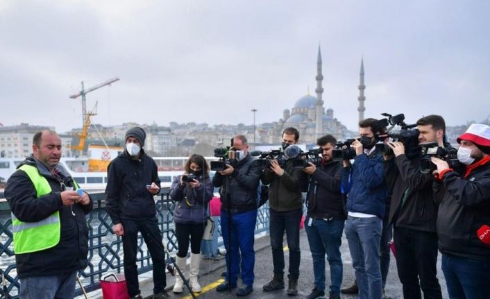 Fatih Belediyesi tarafından 10 Ocak Çalışan Gazeteciler Günü dolayısıyla düzenlenen etkinlikte basın mensupları, Galata Köprüsü üzerinde Haliç’e olta atarak balık tuttu.