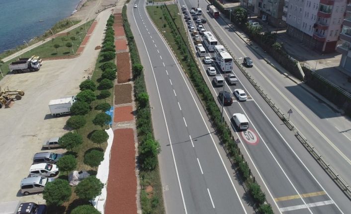 Fındık bahçesinde çuvalla doldurdukları fındıkları kurutmak için Karadeniz Sahil Yolu’na yoluna kadar getiren üreticiler fındıkları metrelerce uzunluktaki kaldırımlara serdiler. Bir yandan fındıklarını kurutan bir yandan da yol kenarlarında oluşturdukları tezgahlarda taze fındık satışı yapan üreticiler, fındığın çok zahmetli iş olduğu belirttiler.