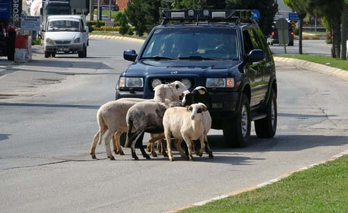 Tokat’ta kurban pazarından kaçan koçlar trafiği birbirine kattı.