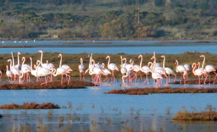 Afrika, Asya ve Güney Avrupa’da yaşadıkları bilinen flamingolar bu yıl koruma altında bulunan Tuzla sulak alanına erken geldi. Kuzey Afrika flamingoları, göç yolları üzerinde bulunan ve Nisan ayına kadar konakladıkları sulak alanında gün batımında görsel şölene sahne oldu. Bodrum’a 20 kilometre mesafede bulunan ve Türkiye’de göçmen kuşlar için en önemli sulak alanlardan biri olan Tuzla Sulak Alanı Doğal Tabiat Parkına gelen binlerce flamingo görenleri kendisine hayran bıraktı. Göç yolları üzerinde bulunan ve yaklaşık 50 çeşit balık ve 40 çeşit kuş türüyle zengin yiyecek deposu olan Tuzla sulak alanı, flamingoların yanı sıra pelikan, boz ördek, balıkçıl, bataklık ve kırlangıç gibi değişik kuş türlerine de ev sahipliği yapıyor.
