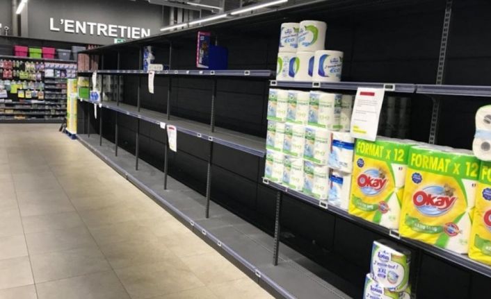 Fransa’da genel sokağa çıkma yasağı haberinin ardından halk marketlere koşup makarna, un, tuvalet kağıdı gibi ürünleri alarak reyonlarını boşalttı.