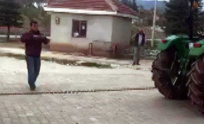 DENİZLİ’DE GENÇLER TRAKTÖRLERİN GÜCÜNÜ YARIŞTIRMAK İÇİN ARALARINA ZİNCİR BAĞLAYARAK GÜÇ YARIŞTIRDILAR. TRAKTÖRLERİ BİRBİRİNE BAĞLADIKTAN SONRA BİR GENÇ İSE “BENDEN MEHMET’E 100 TL” DİYEREK İDDİA KOYDU.