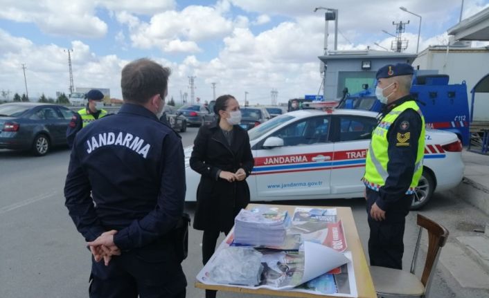 Gölbaşı’nda görev yapan jandarma ve trafik ekipleri ilçe genelinde bulunan farklı uygulama noktalarında Trafik Haftası dolayısıyla seyir halinde bulunan sürücüleri durdurarak Covid-19 salgını ve trafik kuralları ile ilgili bilgilendirme yaptı. Maske ve bilgilendirme broşürleri de dağıtan ekipler vatandaşları duyarlı ve tedbirli olmaları noktasında uyardı.