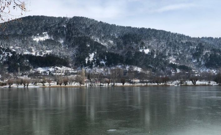 İzmir’deki soğuk hava nedeniyle Ödemiş Gölcük Yaylası’ndaki göl buz tuttu, ortaya kartpostallık manzaralar çıktı.