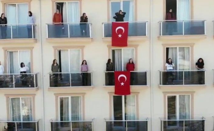 Sakarya’ya yeni atanan ve 14 günlük gözlem altında tutulan 21 polis, yurdun balkonuna çıkarak Polis Akademisi Marşını seslendirdi.