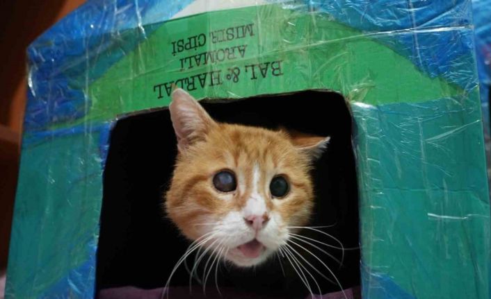 Gümüşhane’de üniversite öğrencileri sosyal sorumluluk projesi kapsamında engelli kediler için kedi evi yaptı.