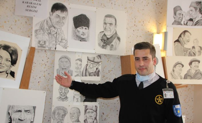 Bilecik İl Halk Kütüphanesinin güvenlik görevlisi Mecit Oral’ın, 4 yıl önce keşfettiği karakalem resim yeteneğini geliştirerek açtığı ilk sergisinde yer alan çalışmalar herkesin beğenisini kazandı. Oral, sergisinde şehitlerin portrelerine de yer verdi.