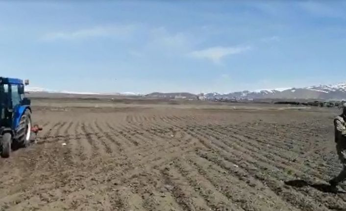 Van’ın Çaldıran ilçesinde korona virüs salgını nedeniyle sokağa çıkması kısıtlanan yaşlı vatandaşın tarlasını güvenlik korucuları traktörle sürüp ekim yaptı.