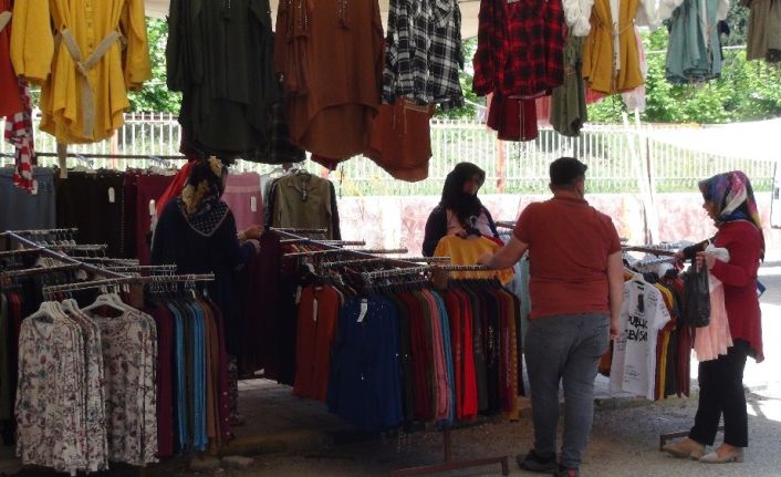 İçişleri Bakanlığının genelgesinin ardından ilçedeki kıyafet pazarlarında bulunan tezgahlar da birer birer açılmaya başlandı. Esnaflar, önümüzdeki hafta içerisinde pazarların daha da yoğunlaşmasını ve işlerinin artmasını beklediklerini kaydetti.