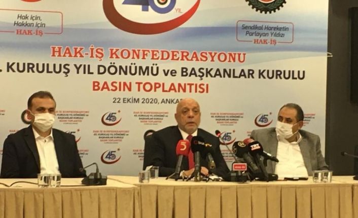 HAK-İŞ Konfederasyonu’nun 45’inci kuruluş yıl dönümü dolayısıyla Genel Başkan Mahmut Arslan, Yönetim Kurulu üyeleri ile birlikte basın toplantısı düzenledi.