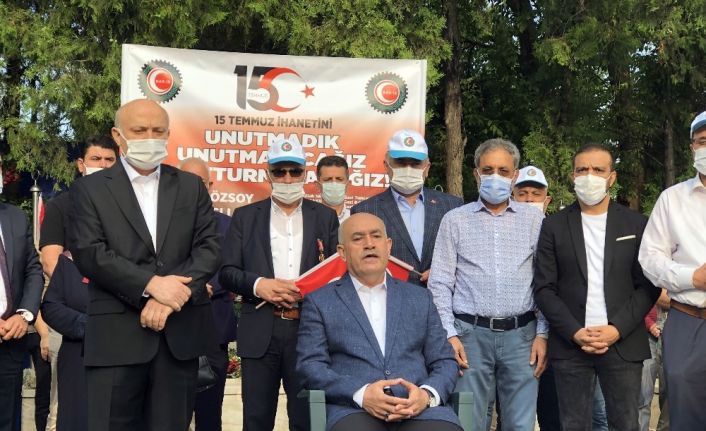 Hak-İş Konfederasyonu Genel Başkanvekili Hüseyin Öz ve beraberindeki heyet, Karşıyaka Mezarlığı’ndaki 15 Temmuz Demokrasi Şehitliği’ni ziyaret etti. Kur’an okuyup, dua edilen şehitlik ziyaretine Hak-İş Konfederasyonu üyesi 15 Temmuz şehidi Celalettin İbiş’in eşi Miyase ile oğlu Yasin İbiş de katıldı. Kur’an tilaveti ve duaların ardından konuşma yapan Hak-İş Konfederasyonu Genel Başkanvekili Hüseyin Öz, "15 Temmuz hain darbe ve işgal girişimi sırasında o menfur gecede, vatanımız için bayrağımız için demokrasi ve özgürlüğümüz için canlarını hiçe sayan ve şehitlik mertebesine ulaşan kardeşlerimizi rahmetle ve minnetle yad ediyoruz. O gece onlarca Hak-İş mensubunun da bulunduğu çatışmanın içerisinde hiçbir fedakarlıktan kaçınmayan Cumhurbaşkanlığı önünde ve bu toprakların her bir karesinde mücadele ederek yaralanan kardeşlerimize de minnet ve şükran ediyoruz. Büyün mensuplarımız o gece Ankara’da ve İstanbul’da darbecilere karşı büyük bir mücadelede bulundular. O mücadele sırasında burada merhum bulunan şehit Celalettin İbiş kardeşimiz Genel Kurmay Başkanlığı önünde, yine Öz İletişim-İş Sendikası kurucularından Ahmet Özsöy ve Ali Karslı kardeşlerimiz Türksat’ı korumak için mücadele ederken ve Hakan Gülşen kardeşimiz Cumhurbaşkanlığı Külliyesi önünde şehitlik mertebesine ulaştılar. Allah bir daha ülkemize ve bu topraklara bir daha böyle bir olayı yaşatmasın. O gece aslında ülkemize dışarıdan bir saldırı yapılmakla beraber ne yazık ki o gece bu ülkenin kaynaklarıyla ordumuzun içerisine yerleşmiş olan hain terör örgütü mensupları bu ülkenin en kutsal değerlerine saldırdılar. O gece Cumhurbaşkanlığını, Meclisi ve özel harekatı bombaladılar. Ama görüyoruz ki o gece milletimizin azmini ve mücadelesini unutmuşlar. Dolayısıyla o gece teşkilat mensuplarımızın da bulunduğu bütün vatandaşlarımız darbecilere karşı canlarıyla mücadele ettiler. O gece şehit olan kardeşlerimizi hiç unutmadık, unutmayacağız" şeklinde konuştu.