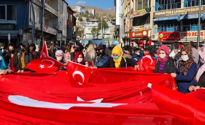 Hakkarili kadınlar, ellerindeki Türk bayraklarıyla teröre lanet ederek, Diyarbakır’daki anneler için destek yürüyüşü düzenledi.