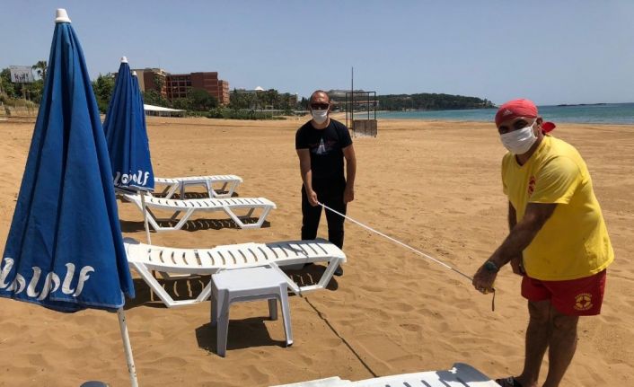 Haziran’da başlaması beklenen turizm hareketliliği Antalyalı turizm işletmecilerini canlandırdı. Plajlarda masa ve sandalye sayıları yarıya düşürülerek, şezlonglar arası mesafeler ölçülmeye başlandı. Eline metreyi alan işletme sahipleri sayısını yarıya düşürdüğü şezlongların arasını santim santim ölçtü.