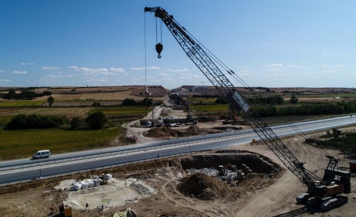 Ulaştırma ve Altyapı Bakanlığı tarafından geçen yıl haziran ayında yapımına başlanan Halkalı-Kapıkule Demir Yolu Hattı Projesi’nde çalışmalar hız kesmeden devam ediyor. Projenin 153 kilometrelik kısmını oluşturan Çerkezköy-Kapıkule demir yolu hattında çalışmalar yoğunluk kazandı. Avrupa ülkeleriyle yüksek standartlı demir yolu bağlantısını sağlayacak, Halkalı-Kapıkule demir yolu projesinin ilk etabı Çerkezköy-Kapıkule arası, ikinci etabı ise Halkalı-Çerkezköy arası olacak. Fiziki olarak yüzde 20 ilerleme sağlanan 1’inci etabındaki hatta Çerkezköy, Büyükkarıştıran, Lüleburgaz, Babaeski, Edirne ve Kapıkule’de istasyonlar olacak şekilde inşa edilecek. Bünyesinde inşası zor sanat yapılarını da barındıran projede 53 alt geçit, 59 üst geçit, 16 demir yolu köprüsü, 2 tünel, 194 menfez ve 3 viyadük yapılacak. Çift hatlı, 200 kilometre hıza uygun, sinyalli ve elektrifikasyonlu inşa edilecek ve toplam yatırım bedeli 10.5 milyar lirayı bulacak hatta, yük ve yolcu trenleri çalışabilecek. Proje, hat güzergahı boyunca organik toprağın korunarak tekrar kullanılması, yaban hayatı için geçişler yapılması ve ses perdesi imalatı gibi tüm çevresel önlemler dikkate alınarak tasarlandı. Havadan çekilen görüntülerde ise kilometrelerce uzunlukta olan hattaki tünellerin, üst ve alt geçitlerin yapımının devam ettiği görüldü. Ayrıca tren hattının sağ ve sol taraflarındaki su kanallarının inşası da devam ediyor.