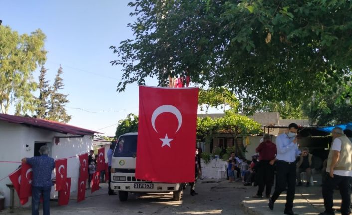 6 ay önce evlendiği öğrenilen şehidin baba evine Türk bayrakları asıldı.