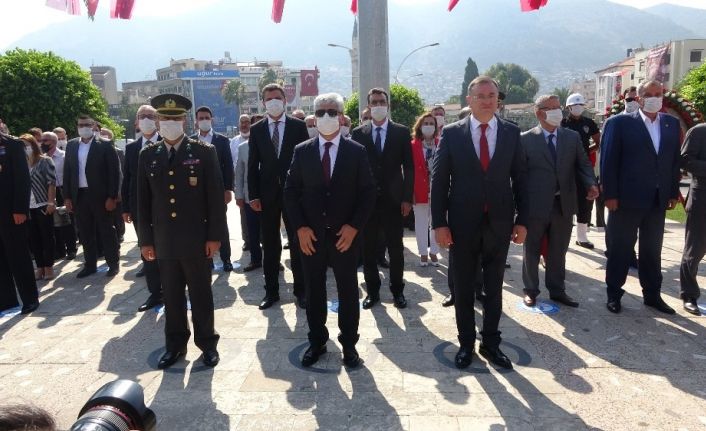 Antakya Atatürk Anıtı önündeki Hatay Valisi Rahmi Doğan, Büyükşehir Belediye Başkanı Lütfü Savaş ve Garnizon komutanı Piyade Komando Albay Orhan Akkurt anıta çelenk sundu. Saygı duruşunda bulunulmasının ardından İstiklal Marşı okundu.