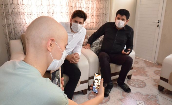 MERSİN (İHA) – Mersin’de sinir sistemindeki kötü huylu tümör ve yumuşak doku kanseri nedeniyle tedavi gören 23 yaşındaki Ayyüce Çınar, hayranı olduğu Fenerbahçeli futbolcu Alper Potuk’la Büyükşehir Belediyesinin sürpriziyle telefonla görüntülü olarak görüştü. Ayyüce Çınar, sürprizle büyük mutluluk yaşadı.