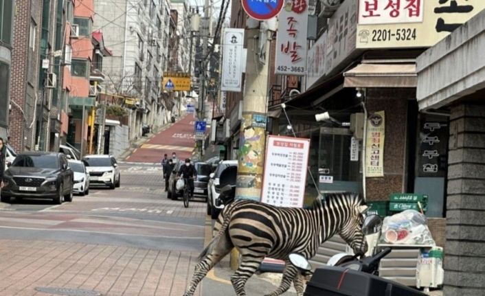 Güney Kore’de bir hayvanat bahçesinden kaçıp yerleşim bölgesine ulaşan zebra, trafikte tehlikeli anlar yaşanmasına neden oldu. Firari zebrayı yakalamak için çalışmaların sürdüğü bildirildi.