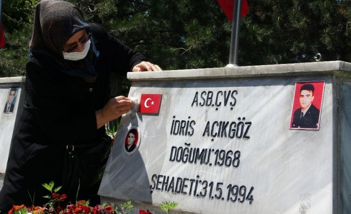 Korona virüs nedeniyle 44 gün sonra yaşlılara verilen sokağa çıkma izni Anneler Günü’ne denk gelirken, Ayşe Açıkgöz polis ekiplerinin yardımı ile şehit oğlu Astsubay Çavuş İdris Açıkgöz’ün mezarına giderek hasret giderdi.