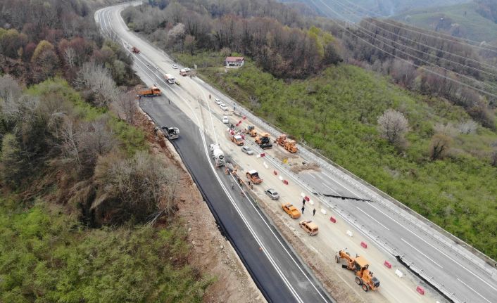 Geçtiğimiz hafta sağanak yağış ile beraber Düzce-Zonguldak yolunda heyelan meydana gelmiş ve yol trafiğe kapatılmıştı. Ağır tonajlı araçlar farklı yollara yönlendirilirken, binek araçlar ise köy yollarından Akçakoca ve Ereğli’ye gidiyor. Heyelan olan bölgede Düzce Valisi Cevdet Atay ve Karayolları Genel Müdürlüğünün incelemelerinin ardından ilk olarak bölgede servis yolu yapılması kararlaştırılmıştı. Heyelan yaşanan yolun 20 metre gerisine karayolları ekipleri tarafından yeni servis yolu açıldı. Açılan servis yolunda asfalt serme işlemleri tamamlandı. Tek şeritli gidiş geliş olarak hazırlanan yolda, bariyerler, su kanalları ve levhalama çalışmaları da yapılıyor. Yapılan çalışmalar havadan görüntülenirken, yol çizgileri de çizildi. Pazartesi gününe kadar Düzce-Zonguldak bağlantısının servis yolunun açılması planlanıyor.Heyelan meydana gelen yoldaki çalışmalar havadan görüntülendi