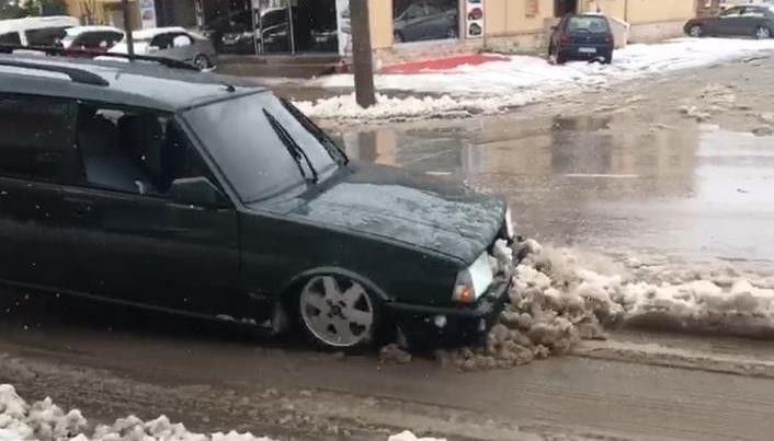 Akyazı ilçesinde etkili olan kar yağışı sonrasında bir vatandaş, modifiye ettiği Tofaş marka otomobili ile kar küredi. Akyazı Sanayi Sitesi’nde modifiye işi yapan Ercan Küçükakyüz’ün, Ada Caddesi üzerinde modifiye ettiği Tofaş marka otomobili ile kar küremesi ilginç görüntüler oluşturdu. Küçükakyüz, amortisör sistemine monte ettiği yay sistemi ile alçalttığı aracının önü ile karları adeta bir kepçe gibi küredi. O anlar ise cep telefonu ile saniye saniye görüntülendi.Hiç böyle kar küreme aracı görmediniz
