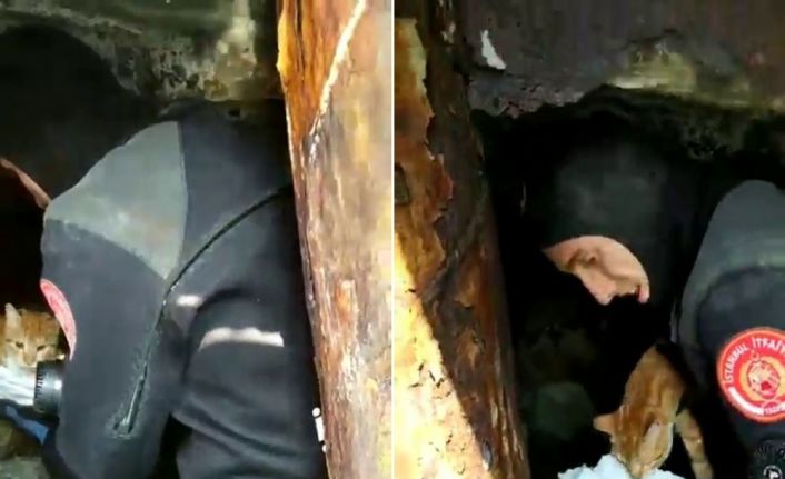 Yenikapı sahilindeki iskelede mahsur kalan kediyi gören vatandaşlar durumu, itfaiye ekiplerine haber verdi. Bunun üzerine bölgeye gelen İBB İtfaiye Su Altı Arama Kurtarma ekipleri, kediyi kurtarmak için çalışma başlattı. Bir itfaiye ekibi iskelenin demirlerinin arasına sıkışan kediyi kurtarmak için suya girdi. Kediyi mama vererek çağıran ve ardından iskele demirleri arasındaki kediye ulaşan itfaiye eri, kediyi kucağına alarak bota aldı. Ekipler tarafından karaya çıkarılan kedi daha sonra tekrar doğaya bırakıldı.