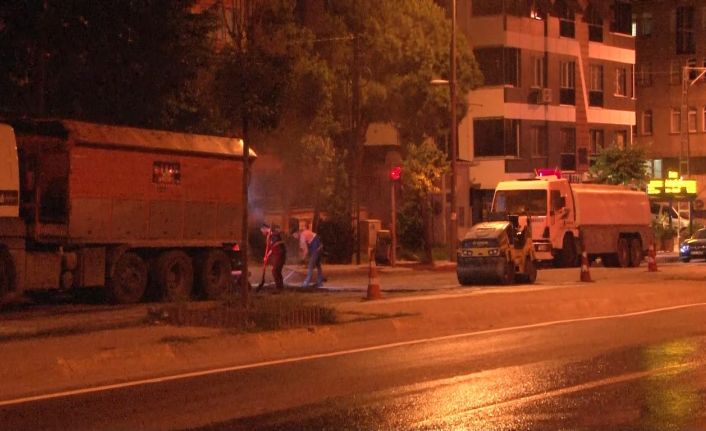İstanbul Büyükşehir Belediyesi’nin (İBB) gece yarısı Küçükçekmece’de yaptığı asfalt yenileme ve onarma çalışması nedeniyle oluşan gürültüden rahatsız olan vatandaşlar, belediye çalışanlarına tepki gösterdi.