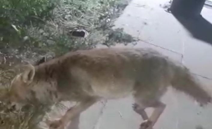 Çankırı’da, iftar vaktinde şehir merkezine gelen bir tilki güvenlik görevlilerince beslendi.