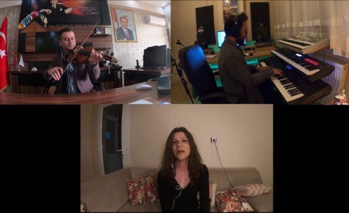 Iğdır’da bir grup müzik öğretmeni, korona virüs (Covid-19) nedeniyle veli ve öğrencilere moral amacıyla ‘Al Elması’ türküsünü seslendirdi.