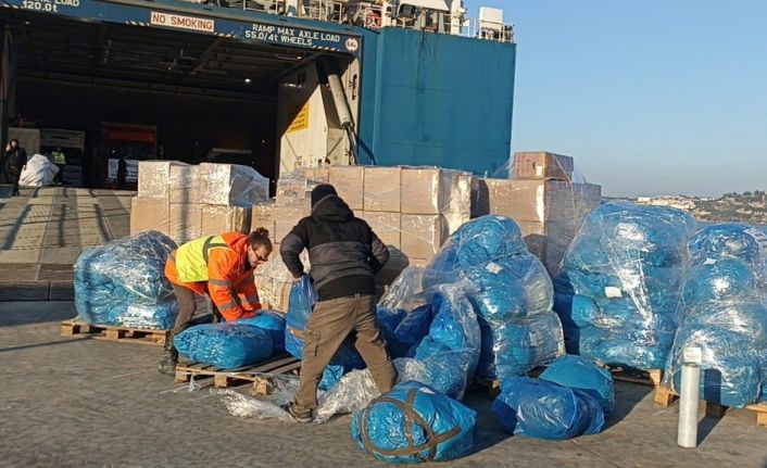 Kahramanmaraş Pazarcık ve Elbistan merkezli depremlerin ardından Muğla’nın Bodrum ilçesinde toplanan yardımlar, kuru yük gemisiyle deprem bölgesine gönderiliyor.