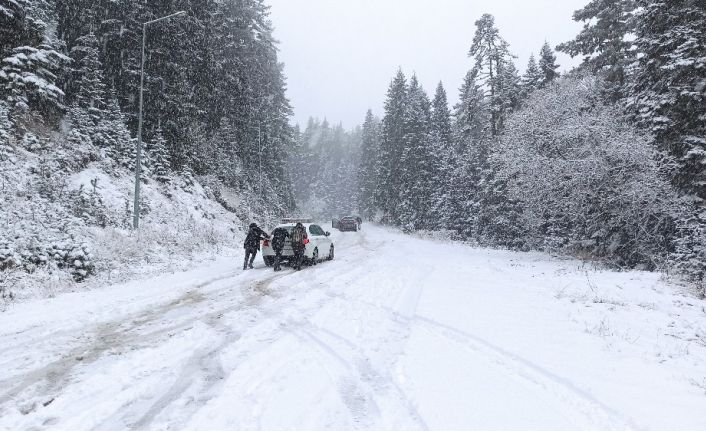 Kastamonu’nun Ilgaz Dağı’nda beklenen kar yağışı başladı.