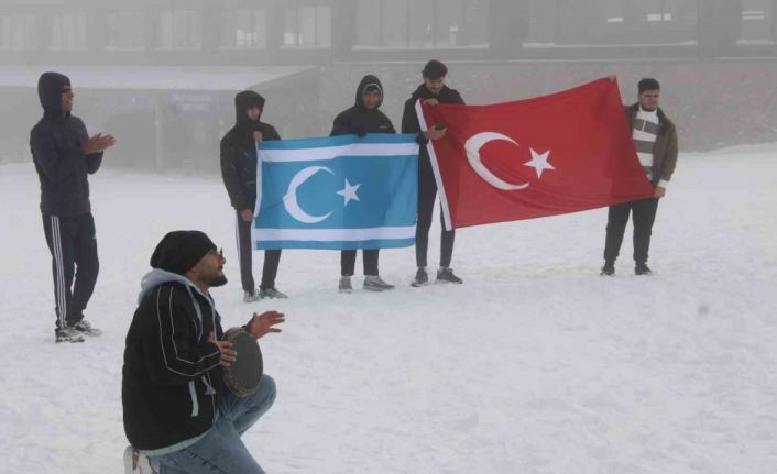 Kayseri’ye kamp için gelen Iraklı Türkmenler, Erciyes’te ilk defa kar görünce türkü söyleyip oyunlar oynayarak gönüllerince eğlendi.