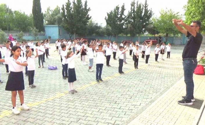 Hatay’ın Dörtyol ilçesinde Milli Eğitim Bakanlığına bağlı devlet ilkokulunda ders öncesi 2 yıldır müzik eşliğinde yapılan sabah sporu, geleneksel hale getirildi.