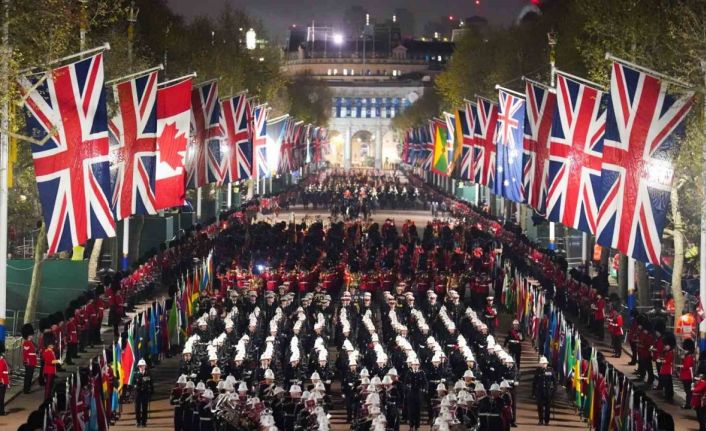 İngiltere’de, Kral III. Charles’ın 6 Mayıs’taki taç giyme töreni için dün gece yarısı prova yapıldı.