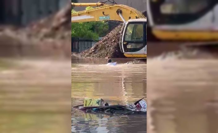 Hatay’da gece saatlerinde etkili olan yağışlı hava hayatı olumsuz etkilemiş ve göllenmeler yaşanmıştı. Payas ilçesinde gece etkili olan yağışla birlikte Yenişehir Mahallesi’nde bulunan şantiye alanındaki paletli kepçe su altında kaldı. Yağışlı havanın etkisini yitirmesiyle operatör, yüzerek ulaştığı iş makinasını yüzerek kurtardı. İş makinası operatörü, kepçeyi kurtararak bölgedeki suyun tahliyesi için tahliyelere başladı. Operatörün yüzerek iş makinasına ulaştığı anlar kameraya yansıdı.