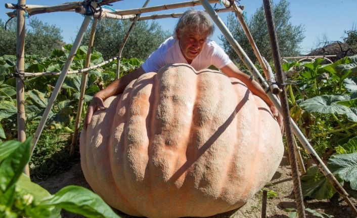 İspanya’nın Portekiz sınırı yakınlarında amatör bir çiftçi, 215 kiloluk kabak yetiştirdi.