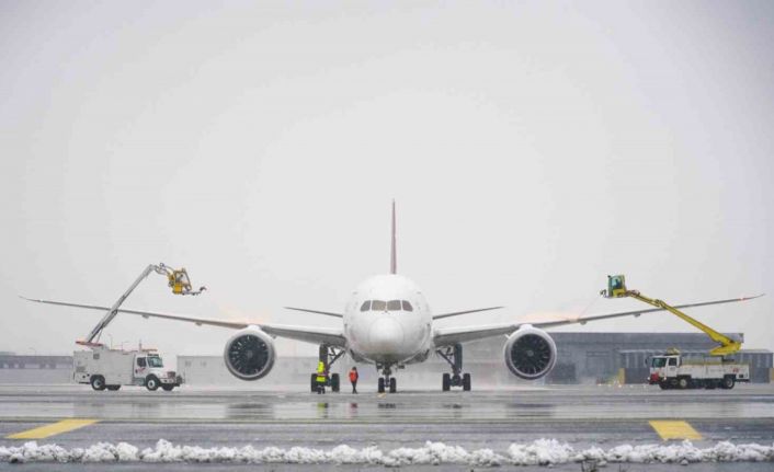 İGA İstanbul Havalimanı’nda uçaklar "de-icing" ve "anti-icing" adı verilen buz çözücü özel sıvılarla yıkanıyor. Havalimanında seferlerde herhangi bir aksama yaşanmıyor.