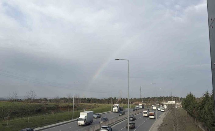 İstanbul’da etkili olan kısa süreli yağışın ardından gökyüzünde beliren gökkuşağı, trafikteki sürücülere adeta görsel şölen sundu.