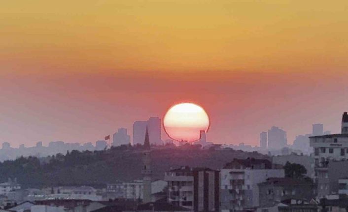 İstanbul’da kızıla bürünen güneşin battığı anlar muhteşem manzara oluşturdu. Ortaya çıkan manzara görenleri kendine hayran bıraktı. İstanbul manzarasıyla birleşen gün batımı, adeta görsel şölen oluşturdu.
