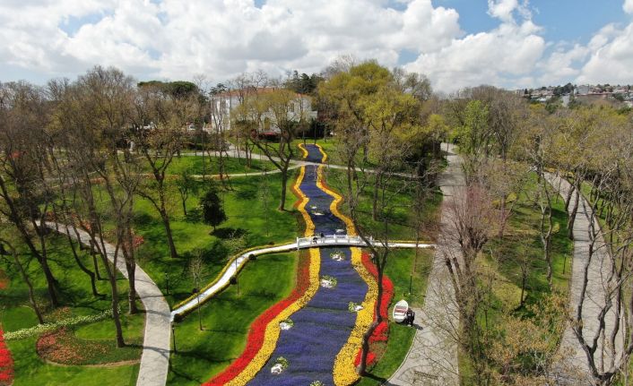 İstanbul’da belirli parklara dikilen laleler açtı, görsel şölen oluştu. Emirgan’da şelale motifi oluşturan laleler, drone ile havadan görüntülendi.