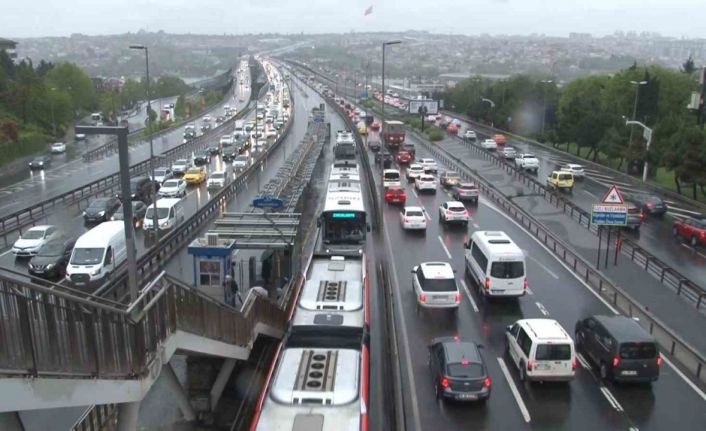 İstanbul’da etkili olan sağanak nedeniyle trafik yoğunluğu yaşanıyor. Avrupa Yakası’nda da etkisini sürdüren sağanak yağış nedeniyle araçlar yolda ilerlemekte güçlük çekti. E5 Karayolu’nda trafik durma noktasına geldi. İstanbul Büyükşehir Belediyesi verilerine göre, kent genelinde trafik yoğunluğu saat 09.50 itibarıyla yüzde 76’ya ulaştı.